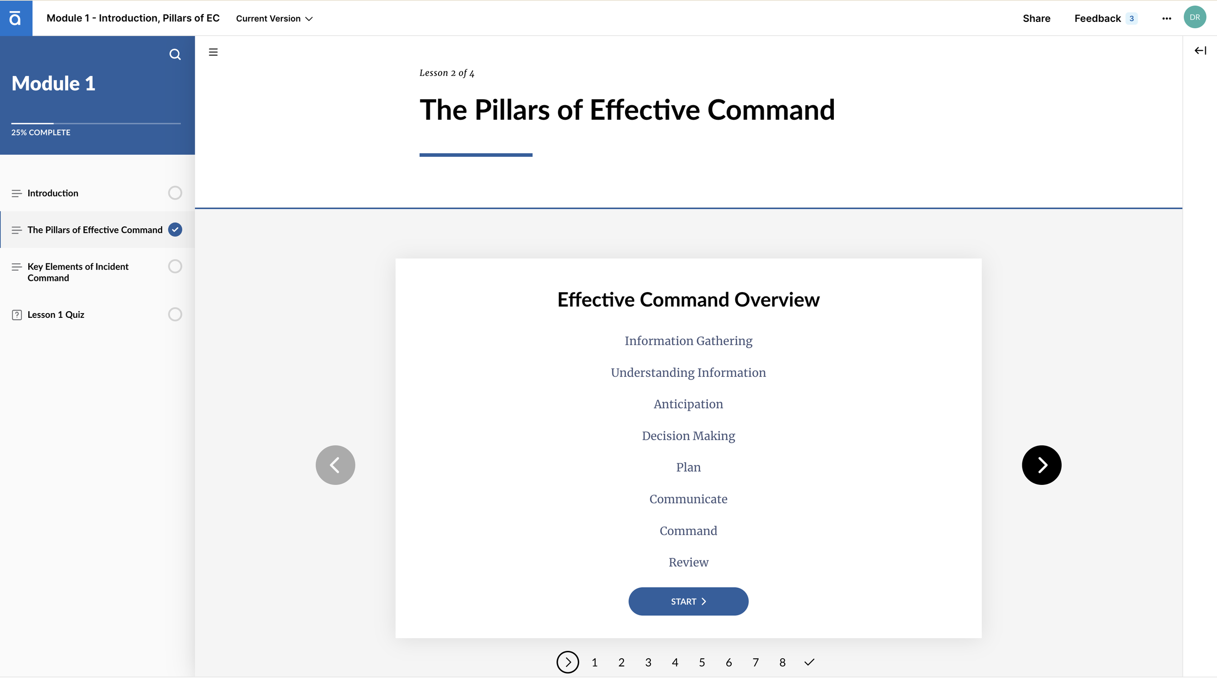 The program includes eight learning modules, six practical incident command scenarios, knowledge checks, supporting resources, and access to the Effective Command Toolkit.